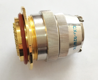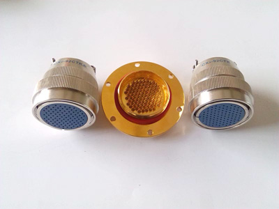 55芯真空检测专用气密封接插件,是航天航空专用元器件,接触件55芯,额定电流5A,耐压1200V,插针镀金,接触电阻小,无打火花现象,插拔不费力,柔和。外壳体镀金,美观大方,靓丽,屏蔽,防电磁干扰。穿墙部位加长2cm,圆形真空罐不需要费事费力,直接安装使用。该系列真空密封接插件连接方式新开发推拉式,卡口式,客户可根据使用环境选用。